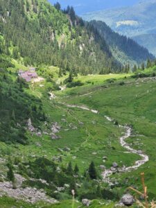 Barcarozsnyó szélén parkolunk, majd nekivágunk a Bucsecs-hegység ösvényeinek. Fokozatosan hagyjuk magunk mögött a lombhullató erdők, majd a fenyvesek territóriumát, hogy mintegy 6 km megtétele után a Malaiesti menedékháznál (1694 m) fogyasszuk el ebédünket és csodáljuk a Bucsecs -hegység büszke ormait. Ehhez a menedékház feletti Malaiesti-völgyet használjuk, ha szerencsénk van zergék felügyelete mellett. A menedékházat a Bucsecs legszebb fekvésűjeként ismerik, nem fogunk csalódni mi sem. A háttérzenét egy hegyi patak zúgása biztosítja. Kiváló hely feltöltődésre, elmélkedésre.