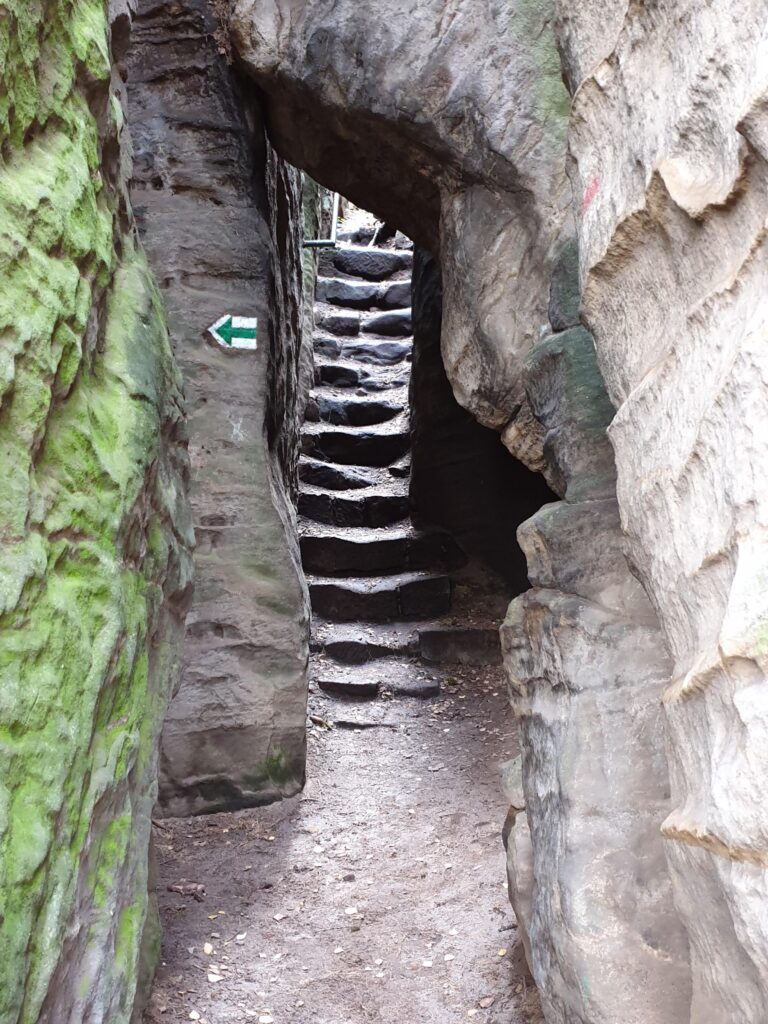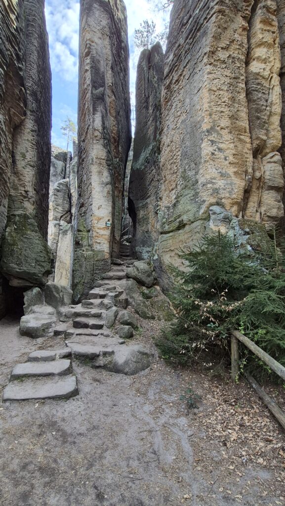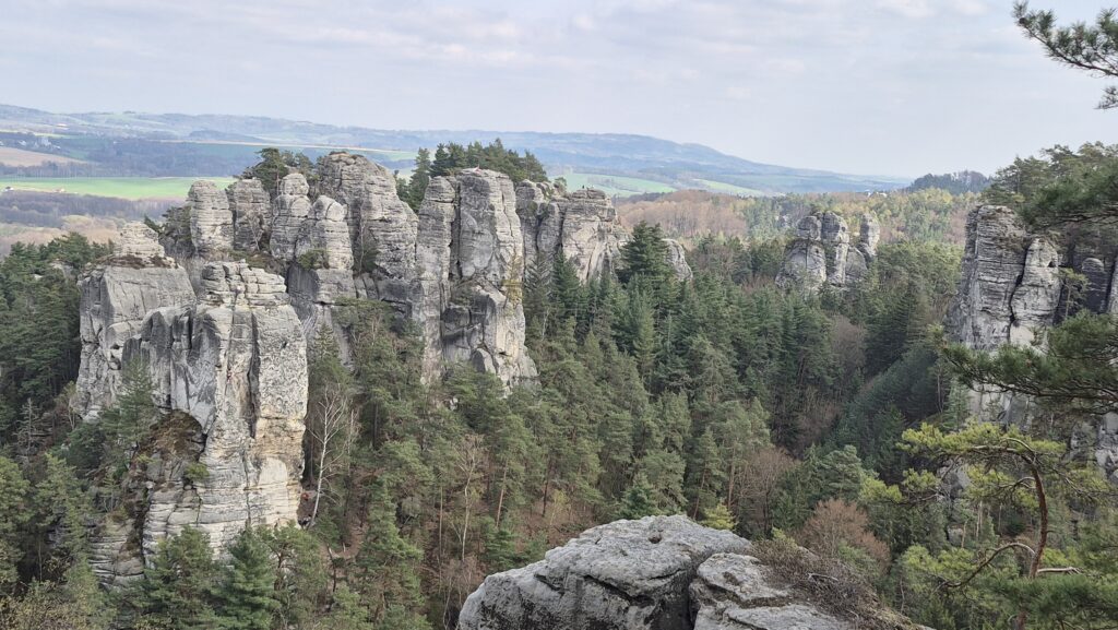 Mi most a Porladó sziklák varázslatos homokkő oszlopai között teszünk egy kb 4 órás, igazán látványos körutat. Az oszlopok tetejéről a kilátás pazar, a változatos formájuk a helyiek fantáziáját is beindította. Szinte mindegyik oszlopnak saját neve van. Ismert az Egérlyuk, a Portás, a Kanapé, a Hordár. Némelyik köztiszteletben álló cseh polgár nevét viseli. De van Buzogány, Fog, Termeszvár is.