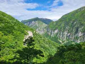 A Ceszna (Tasnei) szurdokvölgyének vágunk neki, rögtön egy komoly kaptatóval. Szerencsére árnyékot biztosít a lombkorona. Kb fél óra után érjük el a szurdokvölgyet, és ettől kezdve nem fogunk betelni a szépséggel, ami körülvesz. Sziklába vágott ösvény, páratlan kilátás, kristálytiszta vizű patak, vízesés, forrás, vízimalom, hófehér sziklák és egy pásztorszállás (ahol kp-ért sajtot lehet venni) adják egymásnak a kilincset, mi meg több terabite-nyi digitális tartalmat hozunk össze nagyon hamar. Egy mesébe illő réten megpihenünk, majd felmászunk a Fehér Kövek (Pietrele Albe) 1335 méteres, körpanorámát kínáló csúcsához. A látvány rabul ejt, de mi egy pihenő után részben másik útvonalon leereszkedünk a Cserna-völgyébe, a kiinduló parkolóba. Ha időben visszaérünk, fürdünk egyet a számtalan út- és folyószéli termál medencék valamelyikében.