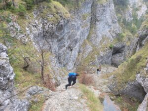 Az elágazásig vissza kell mennünk, hogy folytathassuk utunkat a leglátványosabb résszel. Hirtelen beszűkül és emelkedni kezd a völgy és ezt a szintet létrák segítségével tudjuk leküzdeni. A szurdok felső szakasza is elkápráztat, de mire megcsodáltuk, már el is érjük a völgy felső végét jelentő, virágos karsztfennsíkot.