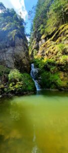 Előtte teszünk egy rövid kitérőt a Ráztocký-vízeséshez, ahol közelről szemlélhetjük a víz hatalmas, természetformáló erejét és hallgathatjuk a vízesés morajlását.