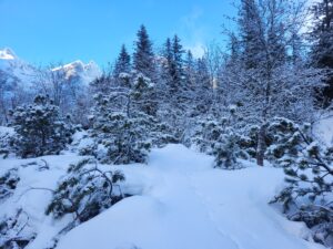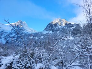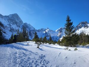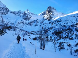 Előbb fenyőerdőben haladunk, majd a törpefenyveshez érve ráfordulunk a Zöld-tavi völgyre, amelynél szebbet nehéz elképzelni. A hófehér díszlet hátterét a bőven 2000 méter felé nyúló hegycsúcsok biztosítják, csak forgatjuk a fejünket a mennyei látványtól és mindent le szeretnénk fényképezni. 3 órányi túra után igen jól tud esni a menedékház konyhájában kapható meleg leves vagy egyéb finomság.
