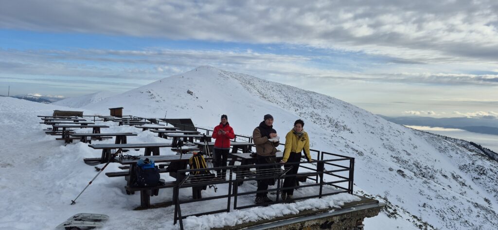 Bő 2 órányi masszív emelkedés után érjük el a Stefaniká menedékházat, ahol elkortyolgatjuk. a jól megérdemelt teánkat vagy válogatunk a menedékház gazdag étlapjáról. A panoráma elvarázsol, a hegsség fő gerincére is rálátunk, de alattunk Garam völgye és a környező csúcsok sem engedik, hogy a zsebunkben maradjon a fényképezőgép.